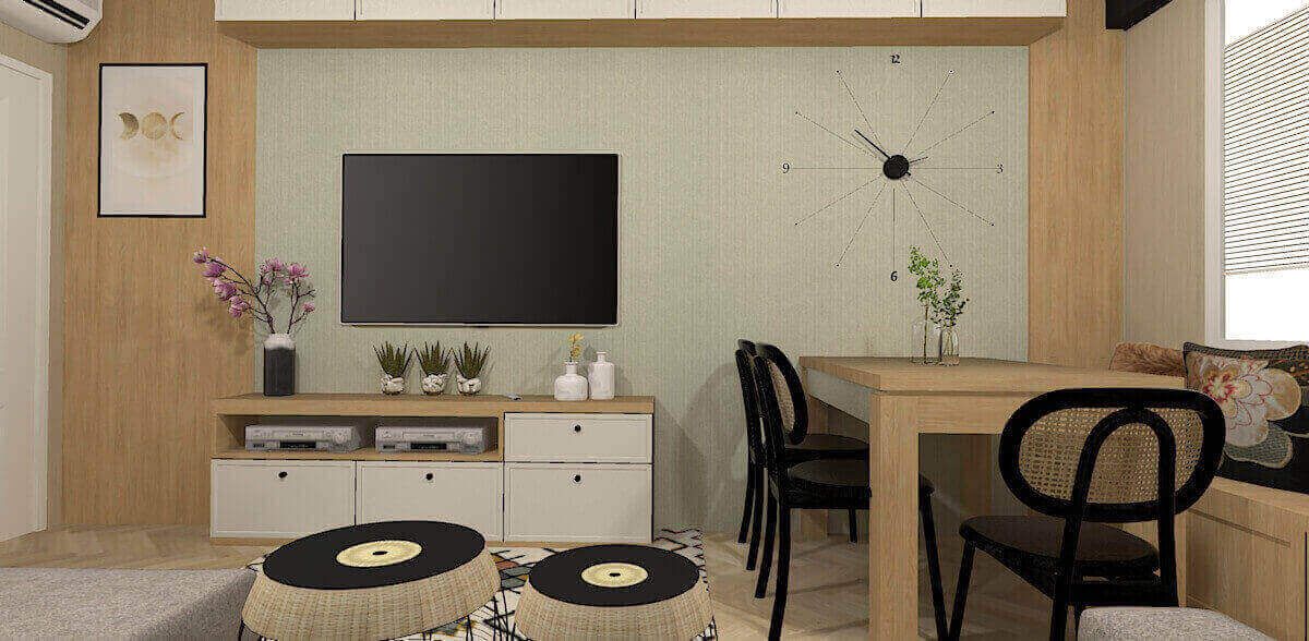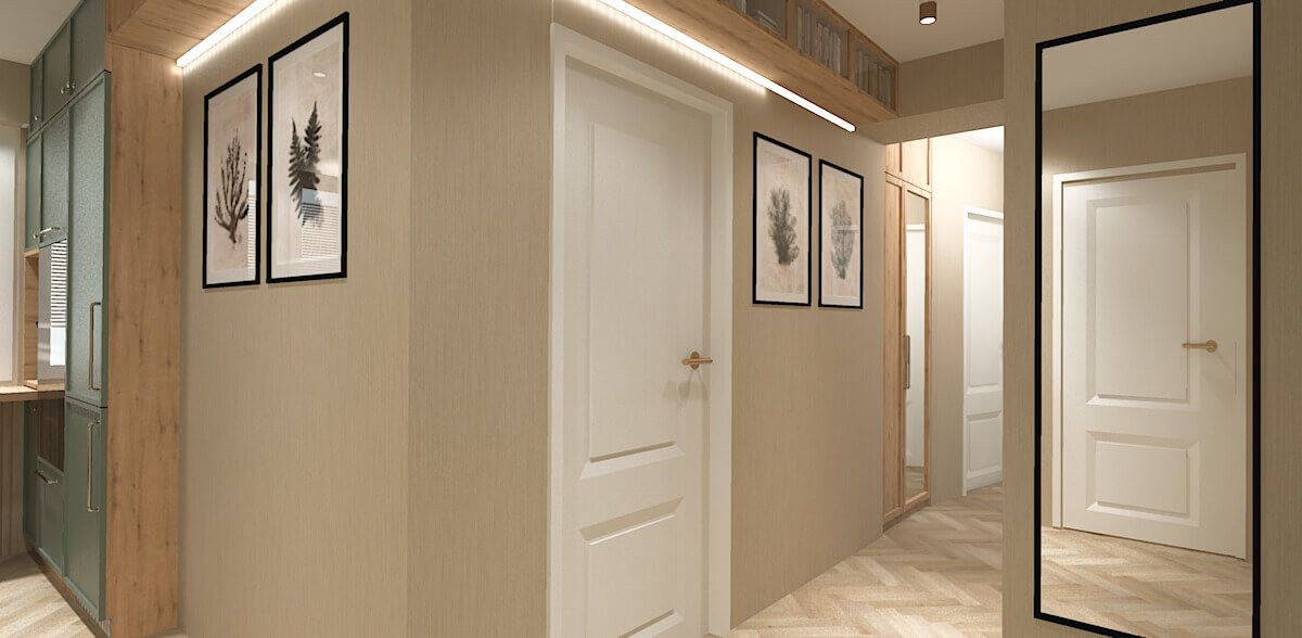 Mieszkanie o powierzchni 75 m² z rynku wtórnego to projekt kompleksowego remontu przygotowany dla rodziny 2 + 3 + pies 🐾. To wnętrze, które łączy funkcjonalność, indywidualizm i przytulny klimat. Każdy z pięciu pokoi ma swoje własne przeznaczenie – każde dziecko ma swój pokój, a rodzice – strefy pracy zarówno w salonie, jak i sypialni. Motywem przewodnim całego projektu stała się zieleń – w różnych odcieniach i teksturach – uzupełniona drewnem, roślinami i naturalnymi materiałami.